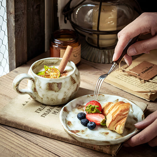 Handcrafted Rustic Glaze Speckled Ceramic Cup & Saucer Set