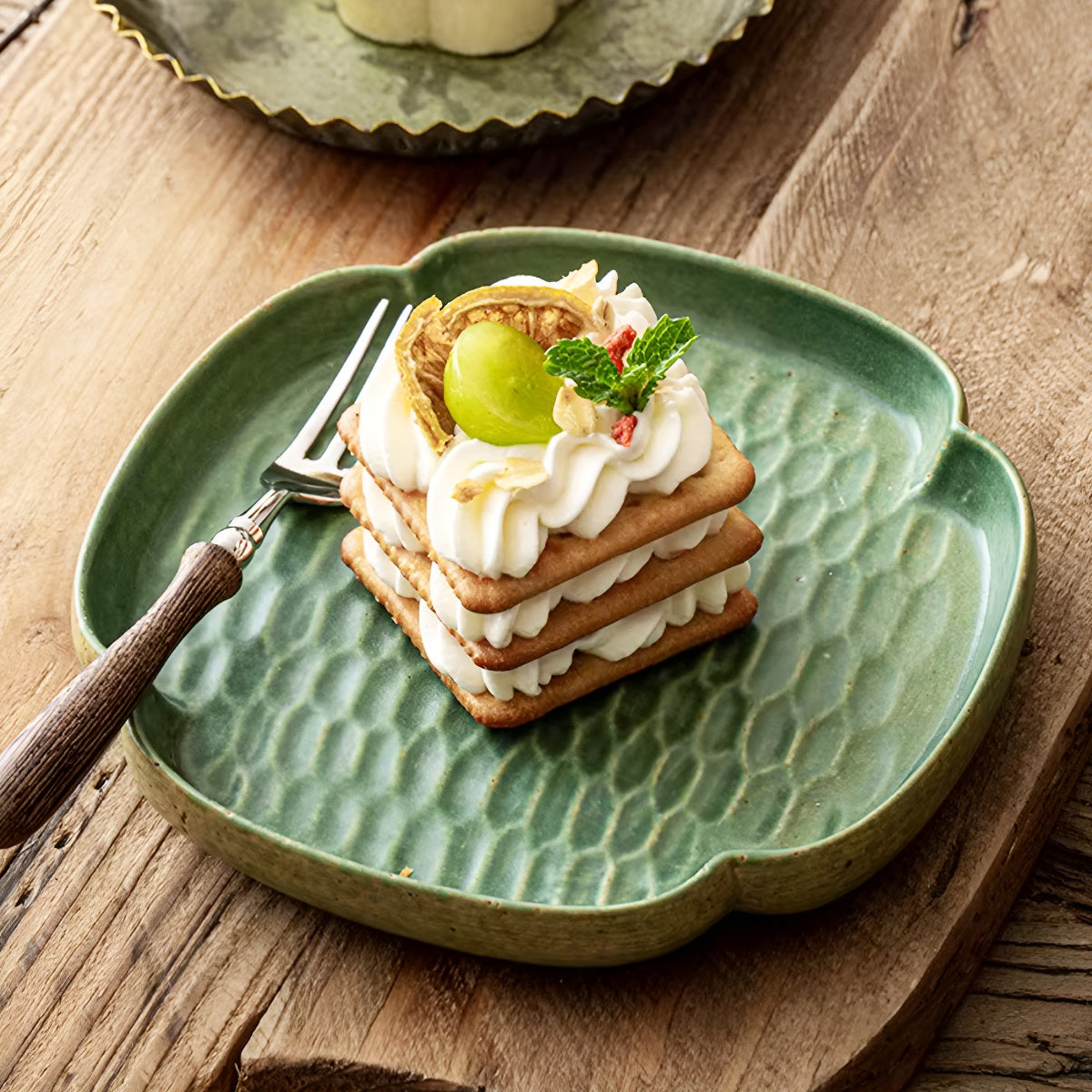 6 Inch Dark Green Textured Clover Ceramic Plate