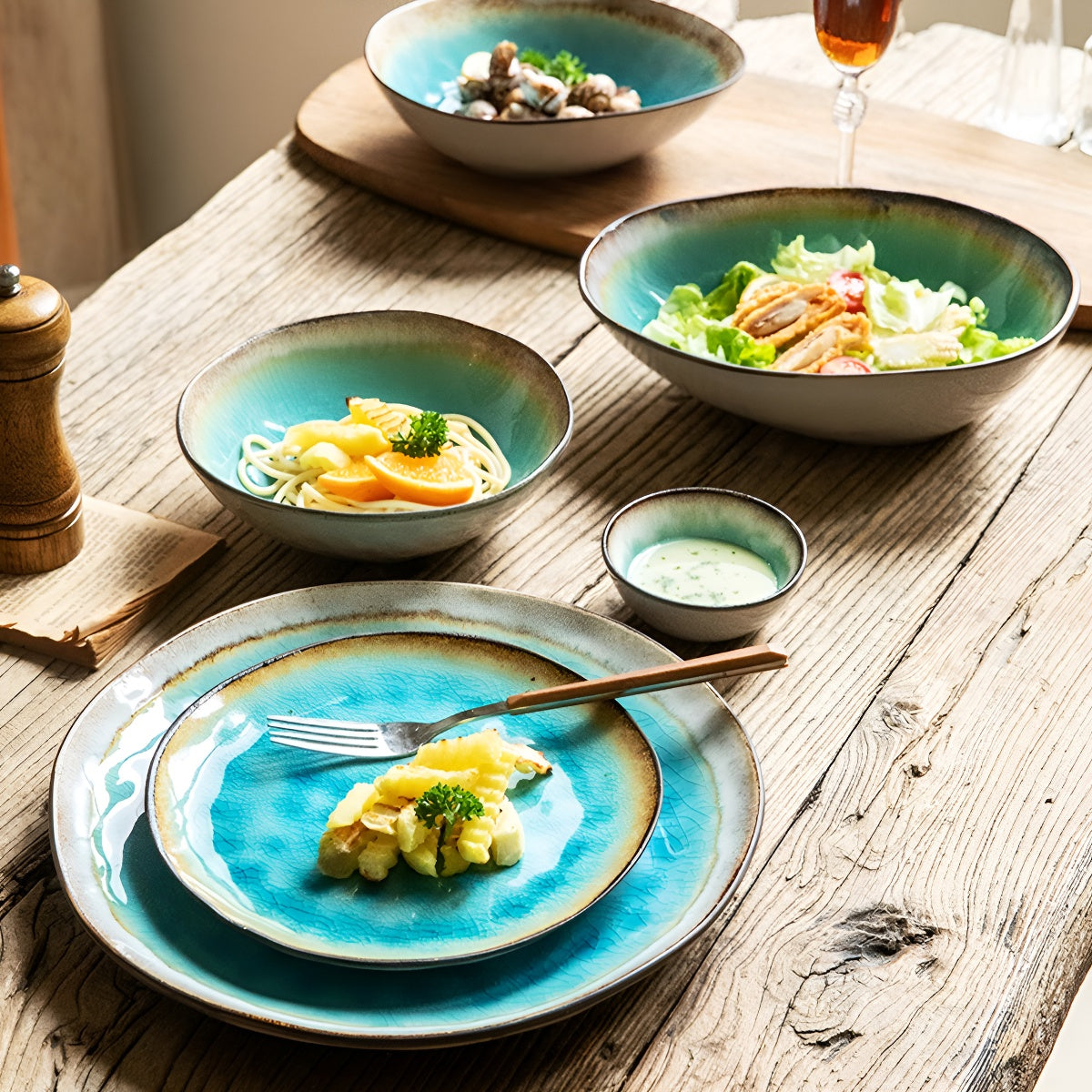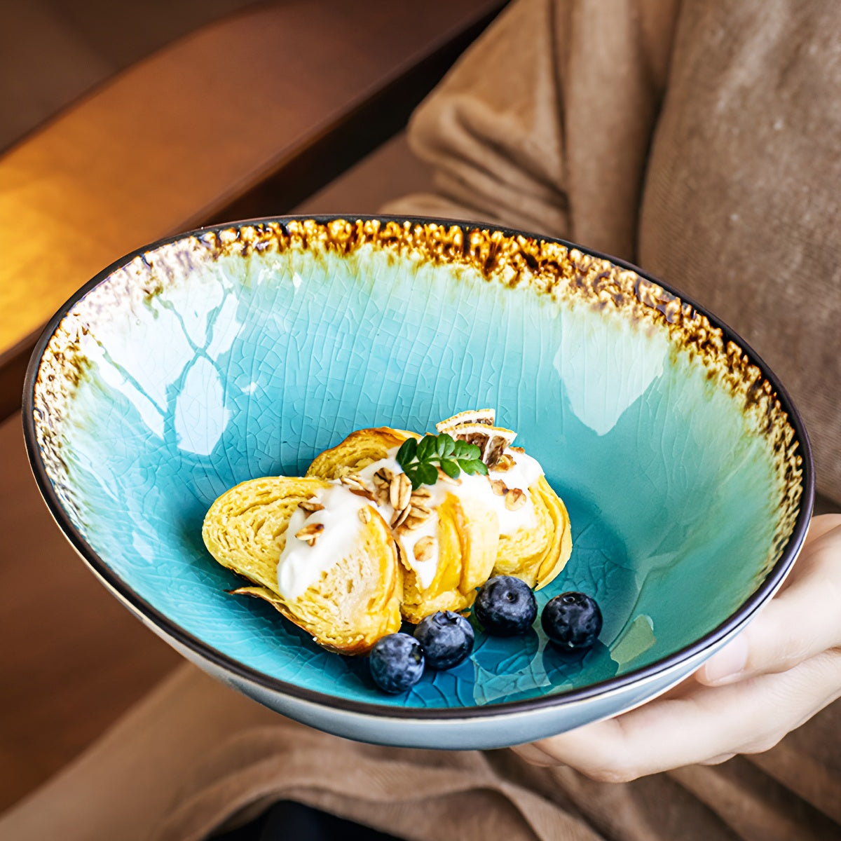 8 Inch Sea-Blue Crackle Glaze Water-Drop Ceramic Bowl
