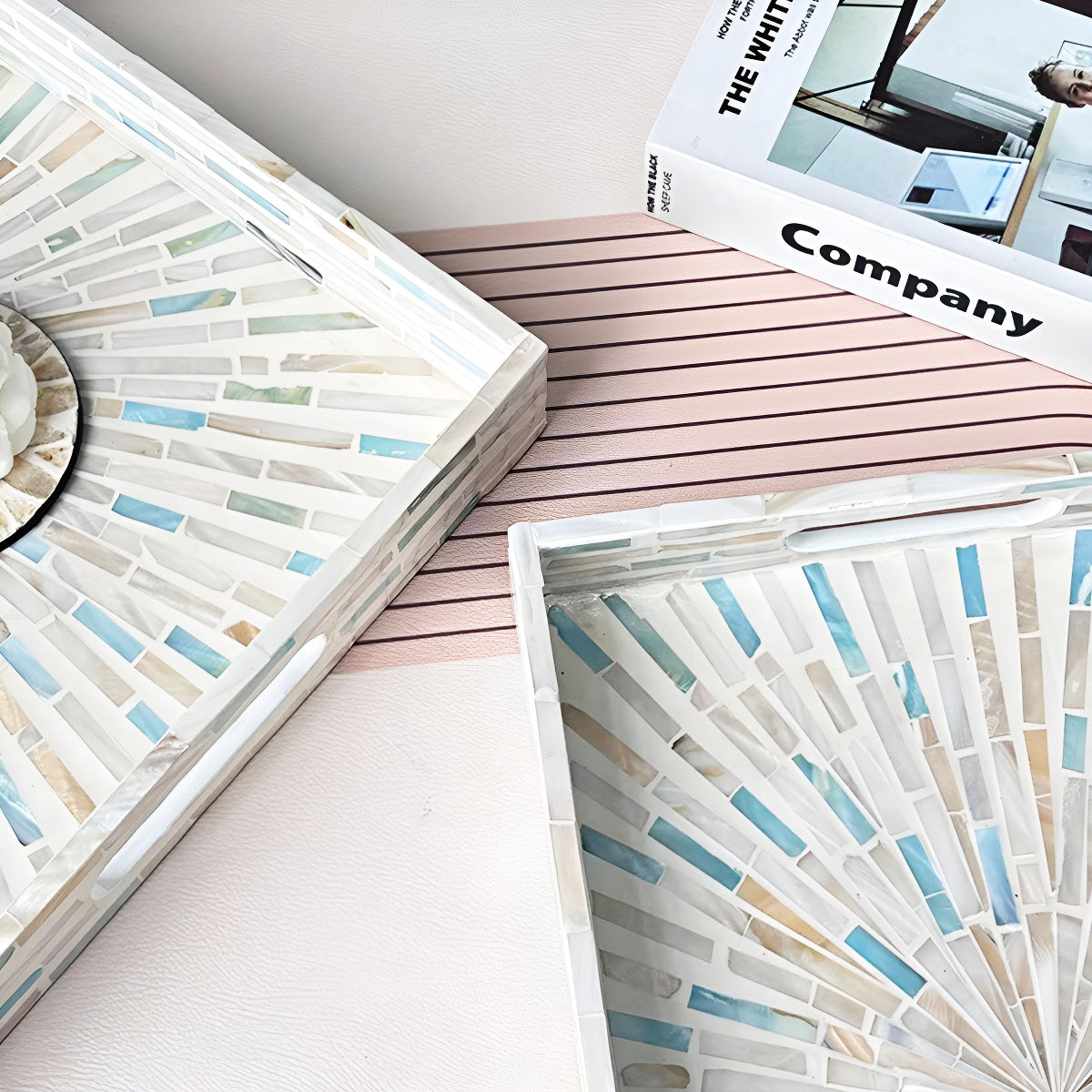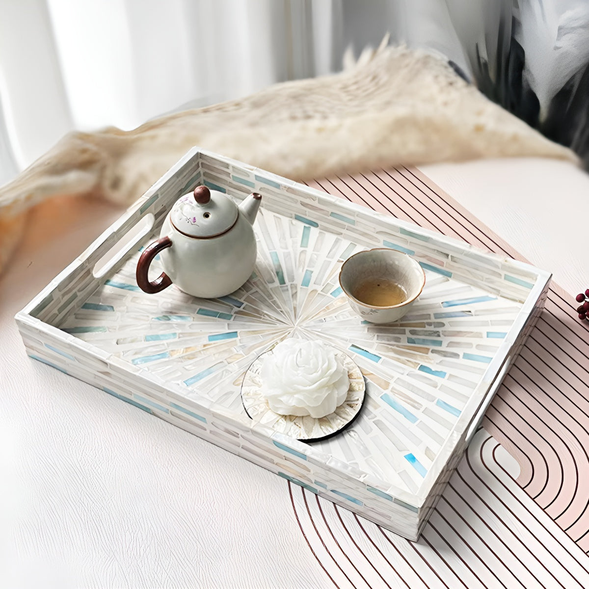 Blue & White Mother of Pearl Radiance Rectangle Serving Tray