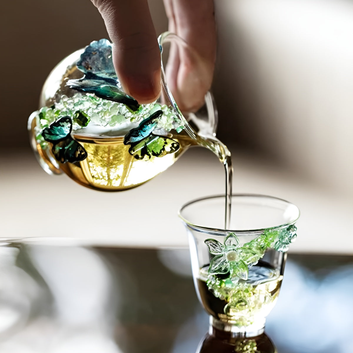 The transparent glass allows your tea’s color to glow, while the sculpted flowers add a soft artistic texture you can both see and feel.