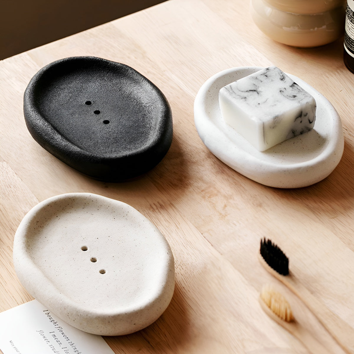 This ceramic soap dish keeps your bar dry and your bathroom chic.